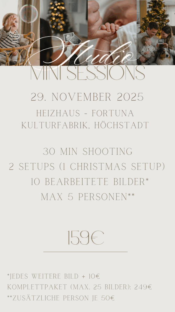 Manche Momente sind einfach zu lebendig für ein einzelnes Bild. Bei meinen Mini Sessions halte ich eure Verbindung genau so fest, wie ihr wirklich seid – voller kleiner Gesten, Lachen, Nähe und echtem Miteinander. In nur 30 Minuten entstehen Erinnerungen, die euch zeigen, wie ihr euch wohl fühlt – ganz natürlich, ungezwungen und mit viel Gefühl.